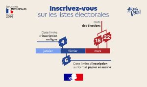 En vue des élections municipales (15 et 22 mars 2026), vous pouvez vous inscrire :